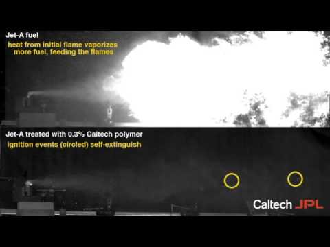 Según se explica en Futurity, Add this to jet fuel for fewer explosions, el polímero básicamente actúa «como un velcro» que une las moléculas de combustible que se han dispersado creando cadenas largas de moléculas. Al mantener unidas las moléculas se reduce el tamaño de las explosiones dificultando la propagación del fuego.